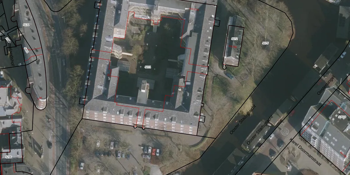 Het adres is gelegen op perceel 5071 in de sectie B en de kadastrale gemeente Leeuwarden. De kadastrale aanduiding is aldus LWD00-B-5071. Het perceel is met 5032 m² relatief groot. Het gemiddelde ligt in de kadastrale gemeente Leeuwarden op 1524,67 m². Het kleinste perceel in de kadastrale gemeente is 0 m² groot. De grootste perceeloppervlakte is 1,54 km². Op het perceel liggen in totaal 165 adressen. De laatste wijziging in het de Basisregistratie Kadaster (BRK) was op 15-01-1998.