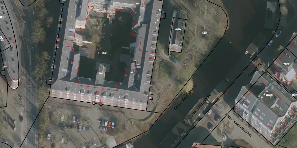 Het adres is gelegen op perceel 5071 in de sectie B en de kadastrale gemeente Leeuwarden. De kadastrale aanduiding is aldus LWD00-B-5071. De gemiddelde perceeloppervlakte in de kadastrale gemeente Leeuwarden is 1524,67 m². Dit perceel is met zijn 5032 m² dus groter dan gemiddeld. De grootste perceeloppervlakte in de kadastrale gemeente is 1,54 km². De kleinste oppervlakte bedraagt 0 m². Op het perceel zijn 165 adressen aanwezig. In de Basisregistratie Kadaster (BRK) werden de grenzen van het perceel geregistreerd op 15-01-1998.