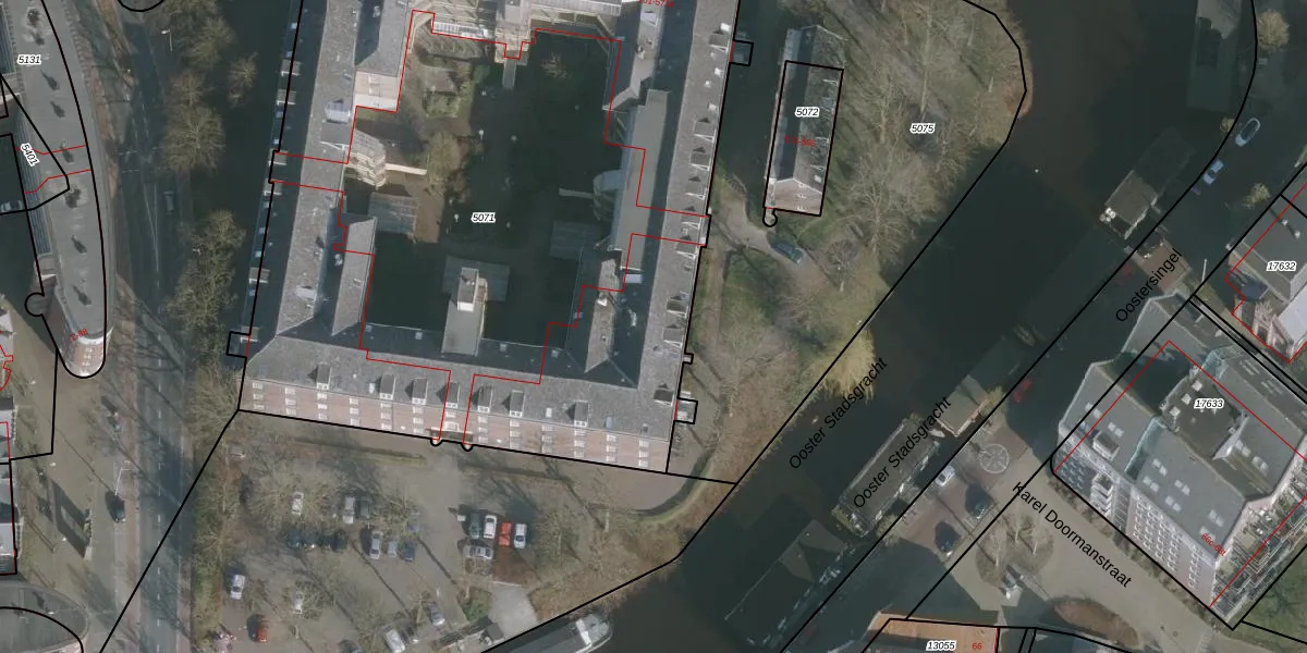 Het adres is gelegen op perceel 5071 in de sectie B en de kadastrale gemeente Leeuwarden. De kadastrale aanduiding is aldus LWD00-B-5071. Het perceel is met 5032 m² relatief groot. Het gemiddelde ligt in de kadastrale gemeente Leeuwarden op 1524,34 m². Het kleinste perceel in de kadastrale gemeente is 0 m² groot. De grootste perceeloppervlakte is 1,54 km². Er zijn 165 adressen aanwezig op het perceel. De laatste wijziging in het de Basisregistratie Kadaster (BRK) was op 15-01-1998.