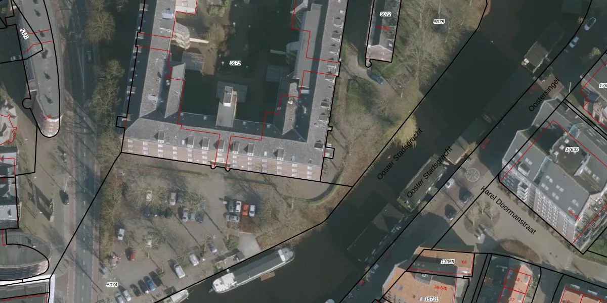 Het adres is gelegen op perceel 5071 in de sectie B en de kadastrale gemeente Leeuwarden. De kadastrale aanduiding is aldus LWD00-B-5071. Het perceel is met 5032 m² relatief groot. Het gemiddelde ligt in de kadastrale gemeente Leeuwarden op 1522,65 m². Het kleinste perceel in de kadastrale gemeente is 0 m² groot. De grootste perceeloppervlakte is 1,54 km². Op het perceel liggen in totaal 165 adressen. De huidige grenzen van het perceel zijn digitaal in de Basisregistratie Kadaster (BRK) geregistreerd op 15-01-1998.