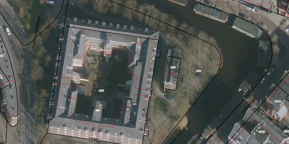 Het perceel waarop het adres ligt is LWD00-B-5071. De afkorting 'LWD00' staat voor kadastrale gemeente Leeuwarden. Het perceel is met 5032 m² relatief groot. Het gemiddelde ligt in de kadastrale gemeente Leeuwarden op 1524,67 m². De grootste perceeloppervlakte in de kadastrale gemeente is 1,54 km². De kleinste oppervlakte bedraagt 0 m². Op het perceel liggen in totaal 165 adressen. In de Basisregistratie Kadaster (BRK) werden de grenzen van het perceel geregistreerd op 15-01-1998.