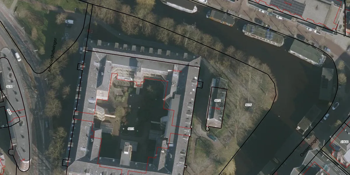 Het adres is gelegen op perceel 5071 in de sectie B en de kadastrale gemeente Leeuwarden. De kadastrale aanduiding is aldus LWD00-B-5071. Het perceel is met 5032 m² relatief groot. Het gemiddelde ligt in de kadastrale gemeente Leeuwarden op 1523,41 m². Het kleinste perceel in de kadastrale gemeente is 0 m² groot. De grootste perceeloppervlakte is 1,54 km². Op het perceel liggen in totaal 165 adressen. De huidige grenzen van het perceel zijn digitaal in de Basisregistratie Kadaster (BRK) geregistreerd op 15-01-1998.