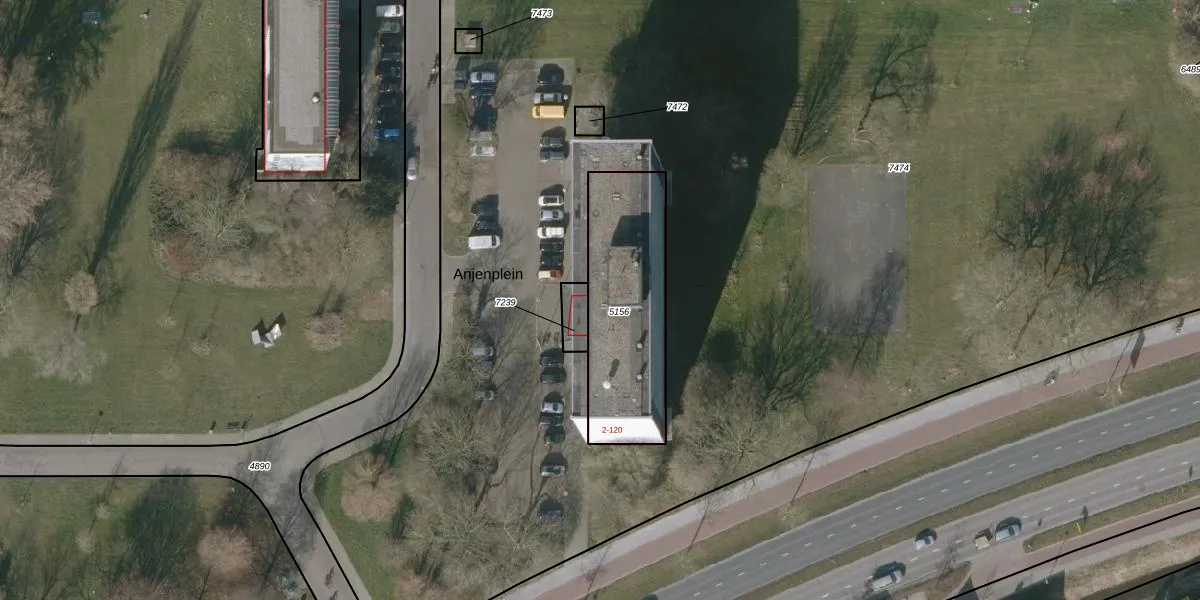 Anjenplein 56 is gelegen op kadastraal perceel LWD00E5156. Deze kadastrale aanduiding is uniek en wordt gebruikt door het Kadaster om eigendomsrechten en andere zakelijke rechten vast te leggen. Het perceel maakt onderdeel uit van de kadastrale gemeente Leeuwarden.