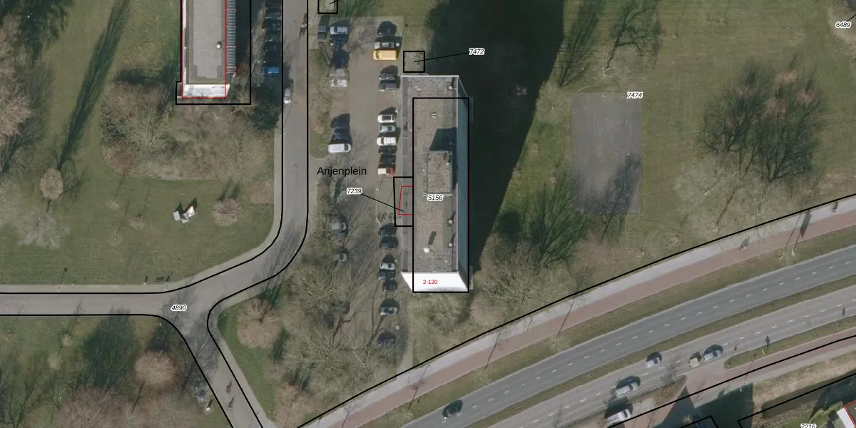 Anjenplein 74 is gelegen op kadastraal perceel LWD00E5156. Deze kadastrale aanduiding is uniek en wordt gebruikt door het Kadaster om eigendomsrechten en andere zakelijke rechten vast te leggen. Het perceel maakt onderdeel uit van de kadastrale gemeente Leeuwarden.