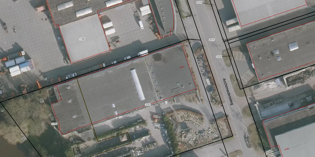 Het perceel waarop Archimedesweg 9 staat heeft een oppervlakte van 5304 m². Dit is een zeer groot perceel. De perceeloppervlakte wordt geregistreerd door het Kadaster. Gedetailleerde informatie over de maten van dit perceel kunt u vinden in het rapport Kadastrale kaart met maatvoering van Archimedesweg 9.