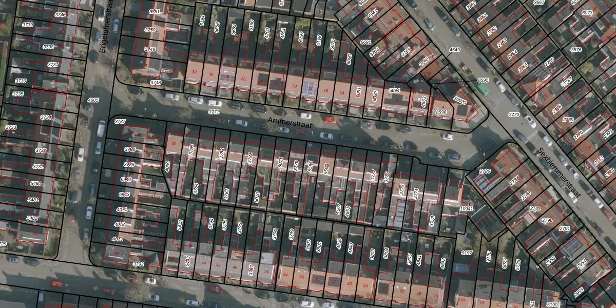 Het perceel waarop Arumerstraat 21 staat heeft een oppervlakte van 124 m². Dit is een middelgroot perceel. De perceeloppervlakte wordt geregistreerd door het Kadaster. Gedetailleerde informatie over de maten van dit perceel kunt u vinden in het rapport Kadastrale kaart met maatvoering van Arumerstraat 21.