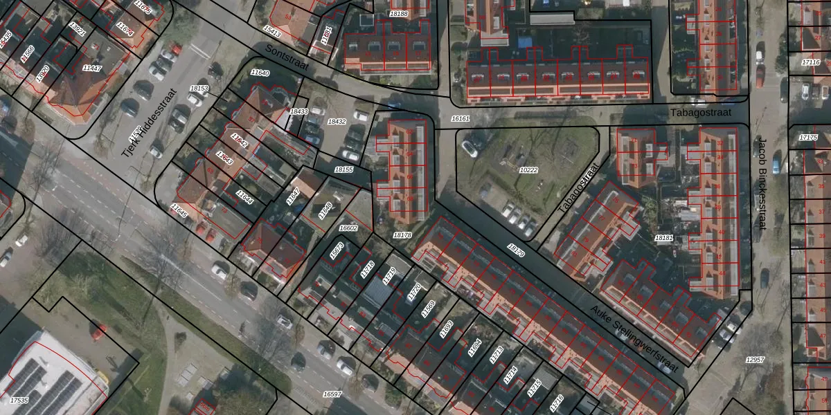Het perceel waarop het adres ligt is LWD00-G-18178. De afkorting 'LWD00' staat voor kadastrale gemeente Leeuwarden. De oppervlakte van het perceel is 1707 m². Dat is groter dan gemiddeld in Leeuwarden, waar de gemiddelde perceeloppervlakte op 1522,59 m² ligt. Het kleinste perceel in de kadastrale gemeente is 0 m² groot. De grootste perceeloppervlakte is 1,54 km². Op het perceel liggen in totaal 17 adressen. De huidige grenzen van het perceel zijn digitaal in de Basisregistratie Kadaster (BRK) geregistreerd op 12-12-2011.