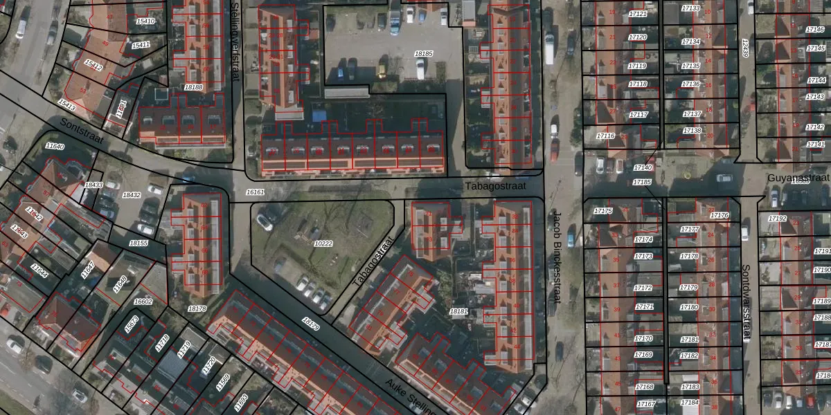 Het perceel waarop het adres ligt is LWD00-G-18181. De afkorting 'LWD00' staat voor kadastrale gemeente Leeuwarden. De oppervlakte van het perceel is 2058 m². Dat is groter dan gemiddeld in Leeuwarden, waar de gemiddelde perceeloppervlakte op 1522,59 m² ligt. Het grootste perceel in de kadastrale gemeente is 1,54 km². Het kleinste perceel heeft een oppervlakte van 0 m². Op het perceel liggen in totaal 18 adressen. De laatste wijziging in het de Basisregistratie Kadaster (BRK) was op 12-12-2011.