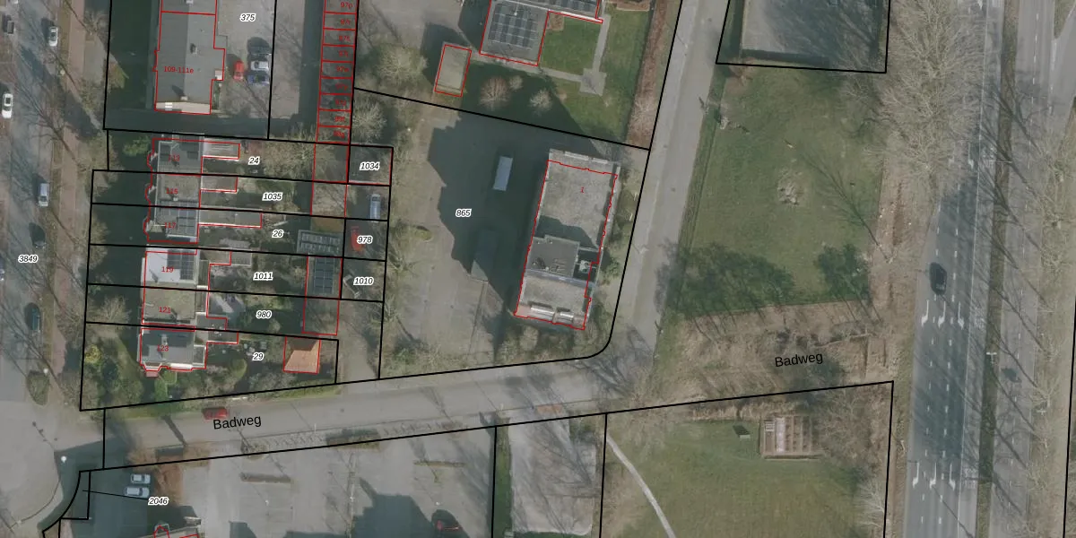 Badweg 1 is gelegen op kadastraal perceel HZM00F865. Deze kadastrale aanduiding is uniek en wordt gebruikt door het Kadaster om eigendomsrechten en andere zakelijke rechten vast te leggen. Het perceel maakt onderdeel uit van de kadastrale gemeente Huizum.