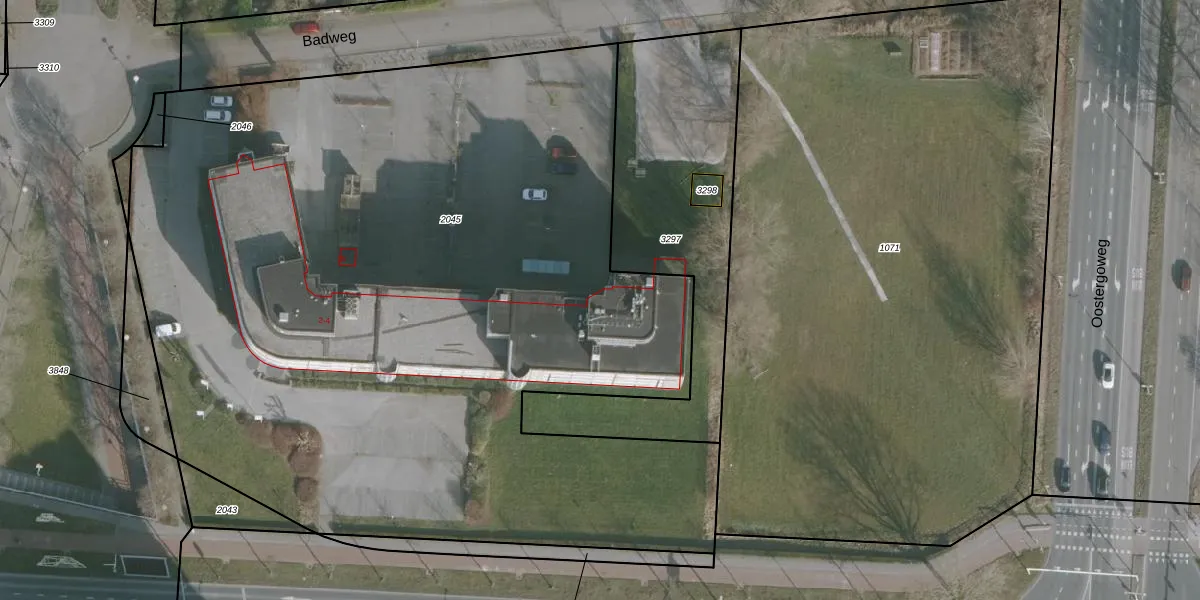 Het perceel waarop Badweg 4 staat heeft een oppervlakte van 6358 m². Dit is een zeer groot perceel. De perceeloppervlakte wordt geregistreerd door het Kadaster. Gedetailleerde informatie over de maten van dit perceel kunt u vinden in het rapport Kadastrale kaart met maatvoering van Badweg 4.