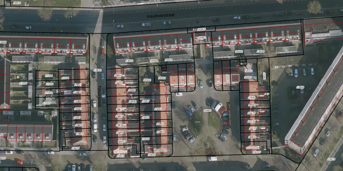 Het perceel waarop Bataviaplein 9 staat heeft een oppervlakte van 165 m². Dit is een middelgroot perceel. De perceeloppervlakte wordt geregistreerd door het Kadaster. Gedetailleerde informatie over de maten van dit perceel kunt u vinden in het rapport Kadastrale kaart met maatvoering van Bataviaplein 9.