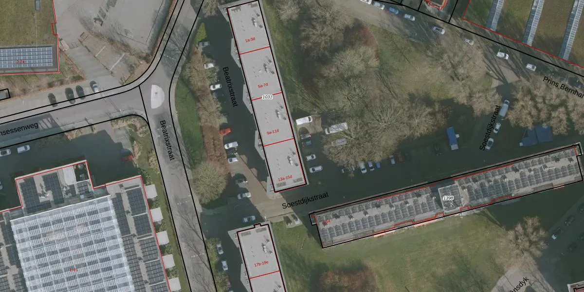 Het perceel waarop Beatrixstraat 13-d staat heeft een oppervlakte van 729 m². Dit is een groot perceel. De perceeloppervlakte wordt geregistreerd door het Kadaster. Gedetailleerde informatie over de maten van dit perceel kunt u vinden in het rapport Kadastrale kaart met maatvoering van Beatrixstraat 13-d.