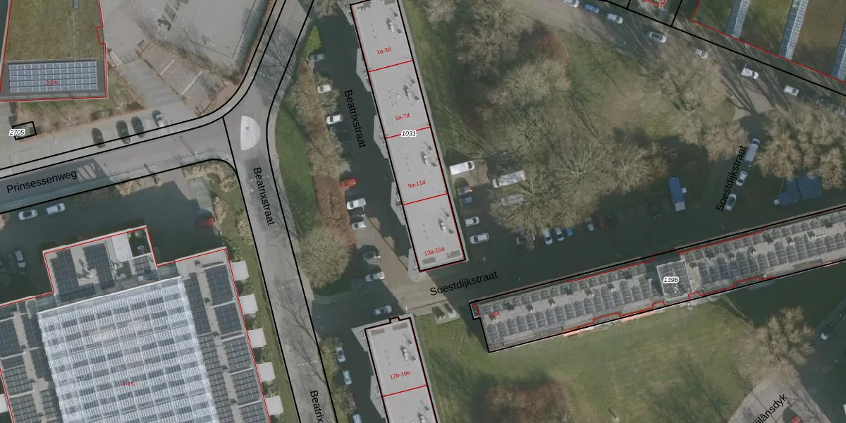 Het perceel waarop Beatrixstraat 13-b staat heeft een oppervlakte van 729 m². Dit is een groot perceel. De perceeloppervlakte wordt geregistreerd door het Kadaster. Gedetailleerde informatie over de maten van dit perceel kunt u vinden in het rapport Kadastrale kaart met maatvoering van Beatrixstraat 13-b.