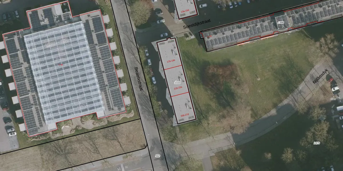 Beatrixstraat 23-b is gelegen op kadastraal perceel HZM00E1033. Deze kadastrale aanduiding is uniek en wordt gebruikt door het Kadaster om eigendomsrechten en andere zakelijke rechten vast te leggen. Het perceel maakt onderdeel uit van de kadastrale gemeente Huizum.