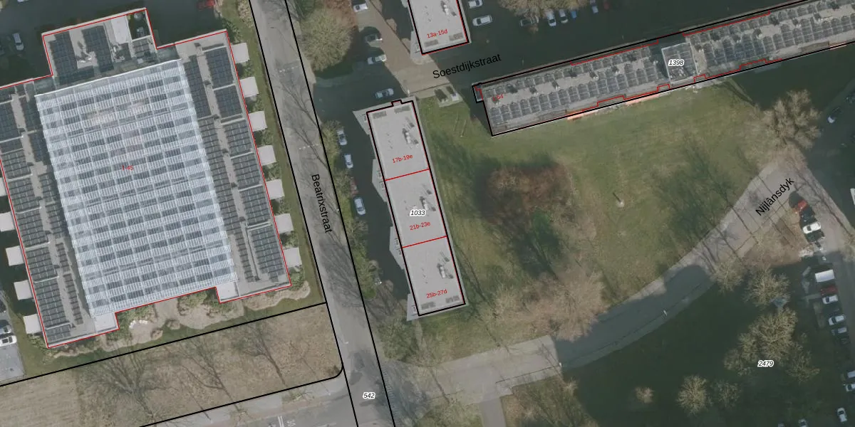 Het perceel waarop Beatrixstraat 23-d staat heeft een oppervlakte van 551 m². Dit is een groot perceel. De perceeloppervlakte wordt geregistreerd door het Kadaster. Gedetailleerde informatie over de maten van dit perceel kunt u vinden in het rapport Kadastrale kaart met maatvoering van Beatrixstraat 23-d.