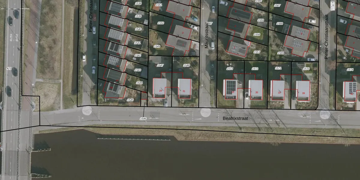 Het perceel waarop Beatrixstraat 31 staat heeft een oppervlakte van 430 m². Dit is een groot perceel. De perceeloppervlakte wordt geregistreerd door het Kadaster. Gedetailleerde informatie over de maten van dit perceel kunt u vinden in het rapport Kadastrale kaart met maatvoering van Beatrixstraat 31.