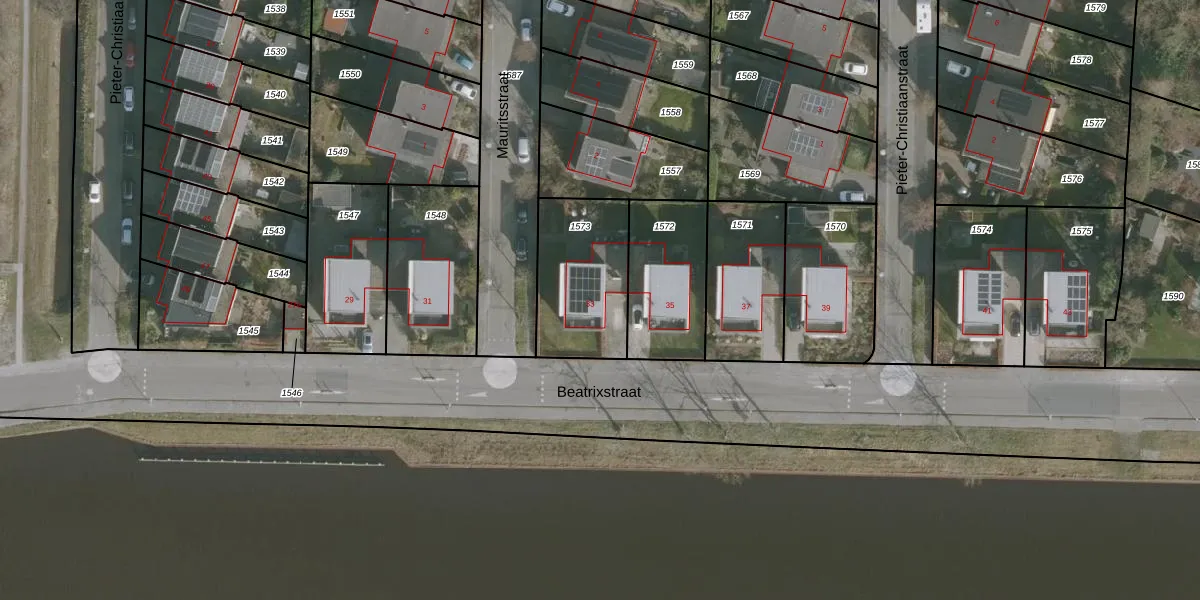 Gebruik de zoekbalk of klik op een perceel voor informatie over de adressen binnen dit perceel.