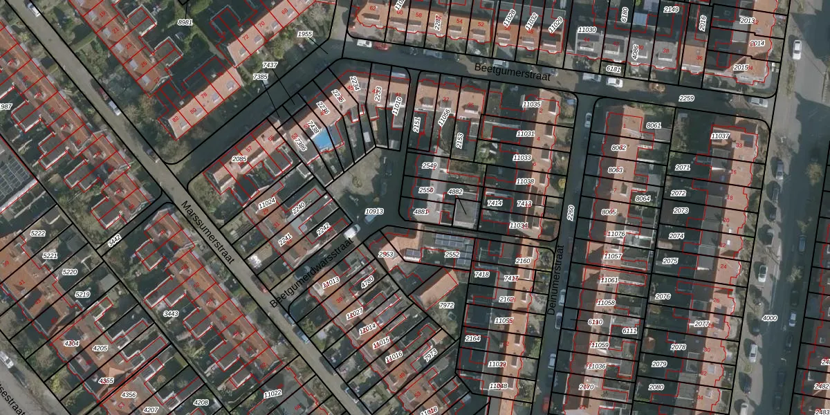 Beetgumerdwarsstraat 5 is gelegen op kadastraal perceel LWD00D4881. Deze kadastrale aanduiding is uniek en wordt gebruikt door het Kadaster om eigendomsrechten en andere zakelijke rechten vast te leggen. Het perceel maakt onderdeel uit van de kadastrale gemeente Leeuwarden.