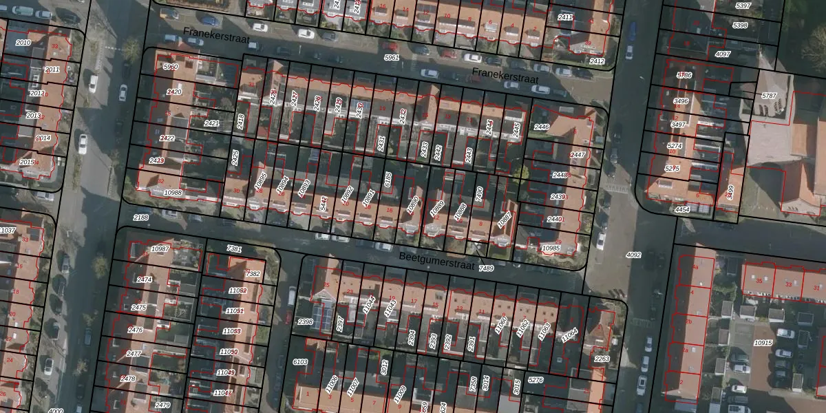 Het perceel waarop Beetgumerstraat 14 staat heeft een oppervlakte van 115 m². Dit is een middelgroot perceel. De perceeloppervlakte wordt geregistreerd door het Kadaster. Gedetailleerde informatie over de maten van dit perceel kunt u vinden in het rapport Kadastrale kaart met maatvoering van Beetgumerstraat 14.