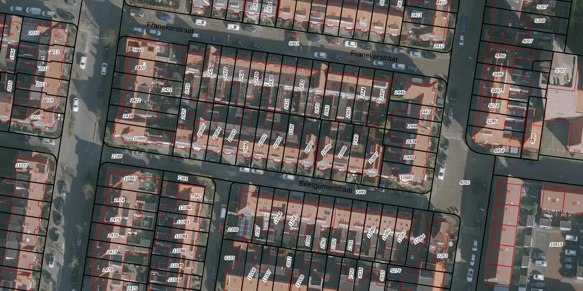 Beetgumerstraat 16 is gelegen op kadastraal perceel LWD00D6185. Deze kadastrale aanduiding is uniek en wordt gebruikt door het Kadaster om eigendomsrechten en andere zakelijke rechten vast te leggen. Het perceel maakt onderdeel uit van de kadastrale gemeente Leeuwarden.