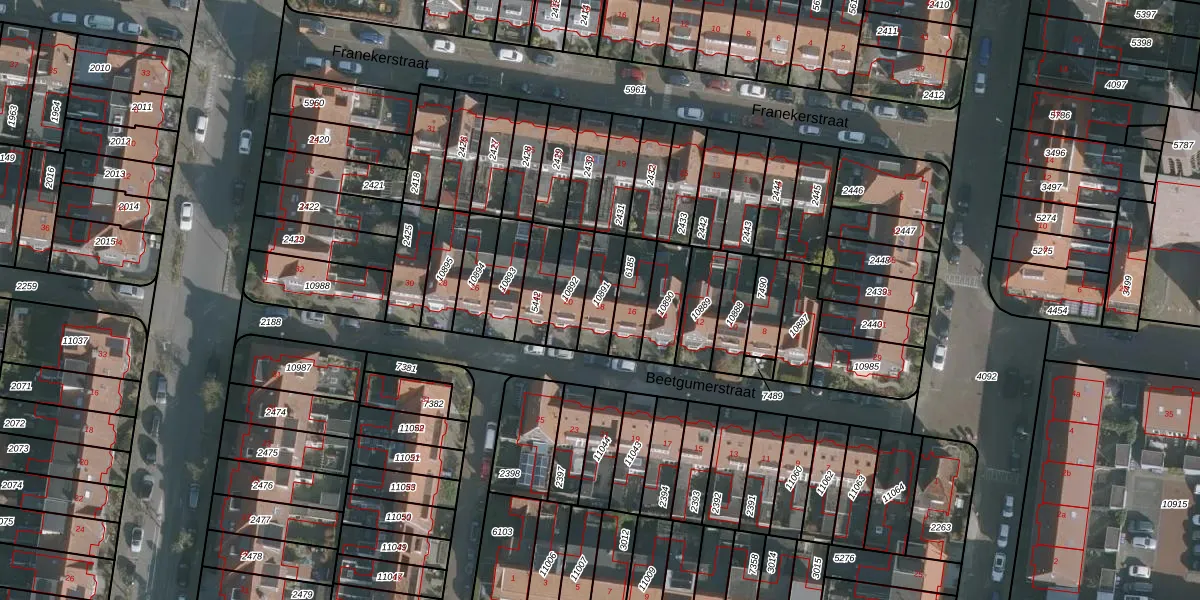 Het perceel waarop Beetgumerstraat 18 staat heeft een oppervlakte van 108 m². Dit is een middelgroot perceel. De perceeloppervlakte wordt geregistreerd door het Kadaster. Gedetailleerde informatie over de maten van dit perceel kunt u vinden in het rapport Kadastrale kaart met maatvoering van Beetgumerstraat 18.