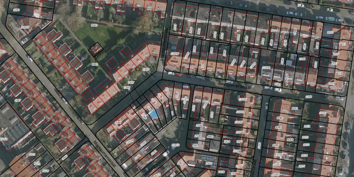 Beetgumerstraat 43 is gelegen op kadastraal perceel LWD00D2233. Deze kadastrale aanduiding is uniek en wordt gebruikt door het Kadaster om eigendomsrechten en andere zakelijke rechten vast te leggen. Het perceel maakt onderdeel uit van de kadastrale gemeente Leeuwarden.