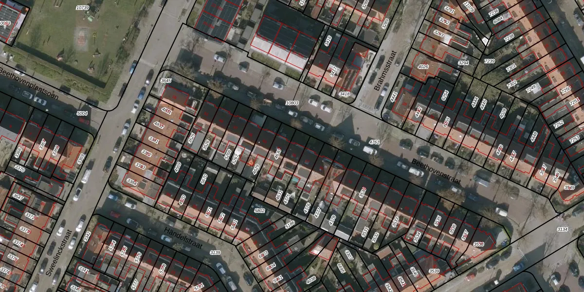 Gebruik de zoekbalk of klik op een perceel voor informatie over de adressen binnen dit perceel.