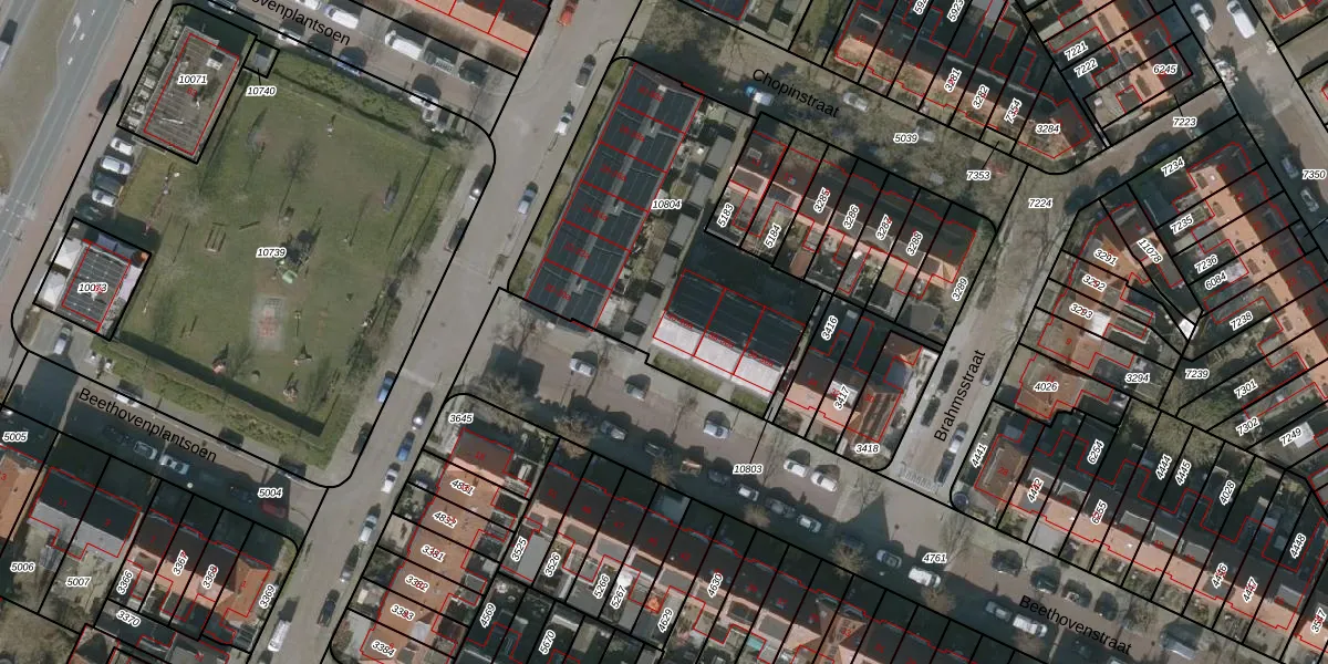 Het perceel waarop Beethovenstraat 40 staat heeft een oppervlakte van 1368 m². Dit is een zeer groot perceel. De perceeloppervlakte wordt geregistreerd door het Kadaster. Gedetailleerde informatie over de maten van dit perceel kunt u vinden in het rapport Kadastrale kaart met maatvoering van Beethovenstraat 40.