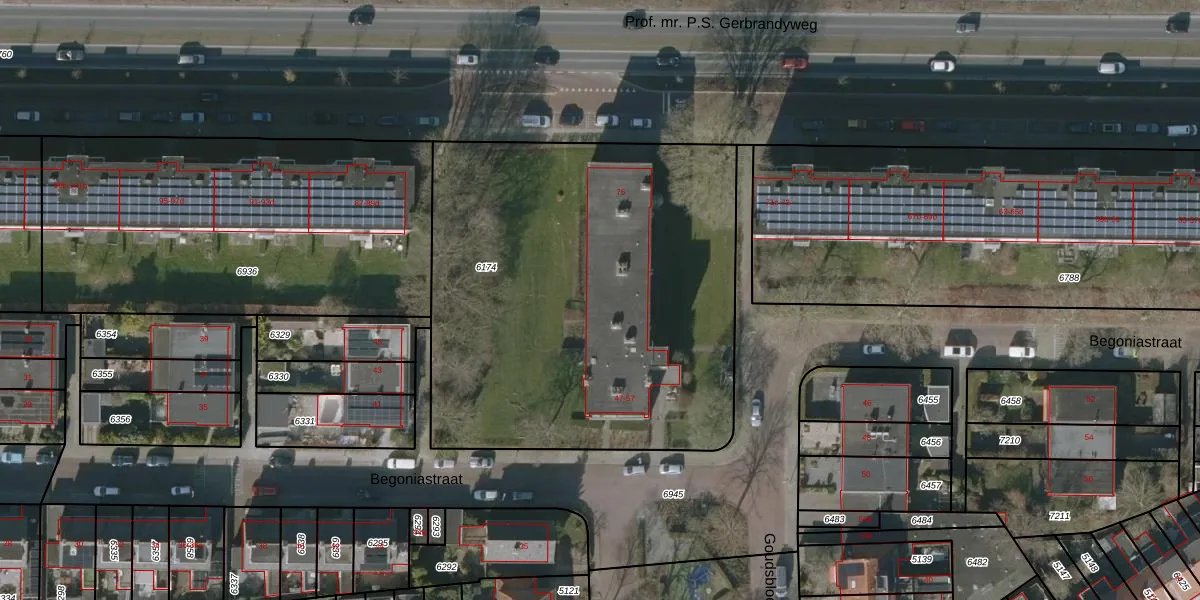 Het perceel waarop Begoniastraat 55-3 staat heeft een oppervlakte van 2596 m². Dit is een zeer groot perceel. De perceeloppervlakte wordt geregistreerd door het Kadaster. Gedetailleerde informatie over de maten van dit perceel kunt u vinden in het rapport Kadastrale kaart met maatvoering van Begoniastraat 55-3.