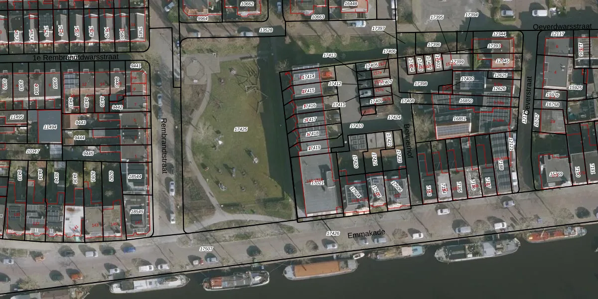 Gebruik de zoekbalk of klik op een perceel voor informatie over de adressen binnen dit perceel.