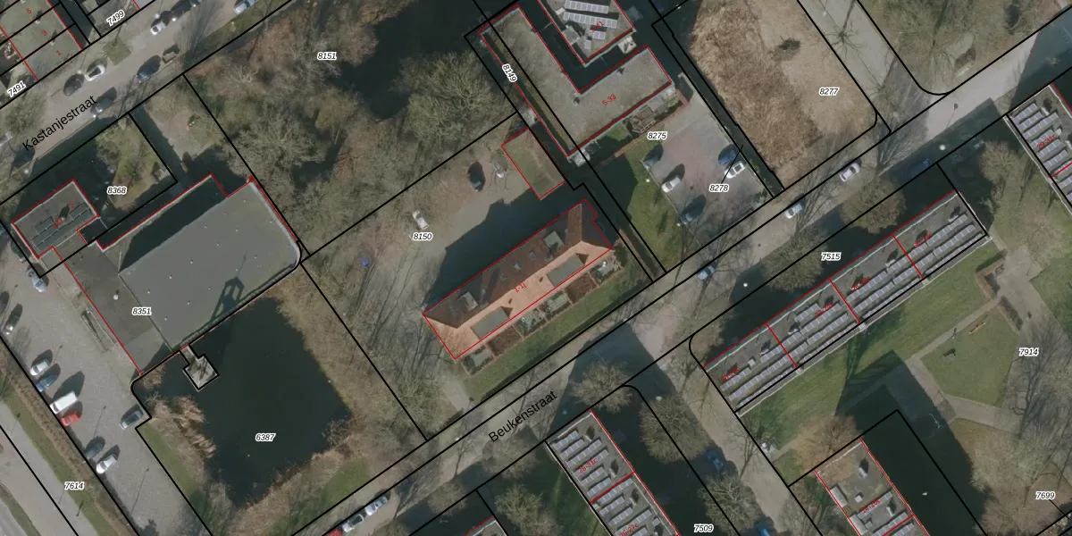 Beukenstraat 1-f is gelegen op kadastraal perceel LWD00F8150. Deze kadastrale aanduiding is uniek en wordt gebruikt door het Kadaster om eigendomsrechten en andere zakelijke rechten vast te leggen. Het perceel maakt onderdeel uit van de kadastrale gemeente Leeuwarden.
