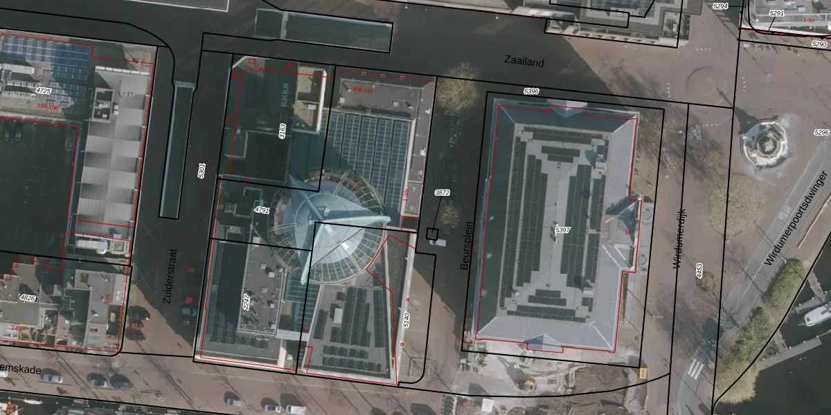 Het perceel waarop Beursplein 3-tr staat heeft een oppervlakte van 1307 m². Dit is een zeer groot perceel. De perceeloppervlakte wordt geregistreerd door het Kadaster. Gedetailleerde informatie over de maten van dit perceel kunt u vinden in het rapport Kadastrale kaart met maatvoering van Beursplein 3-tr.