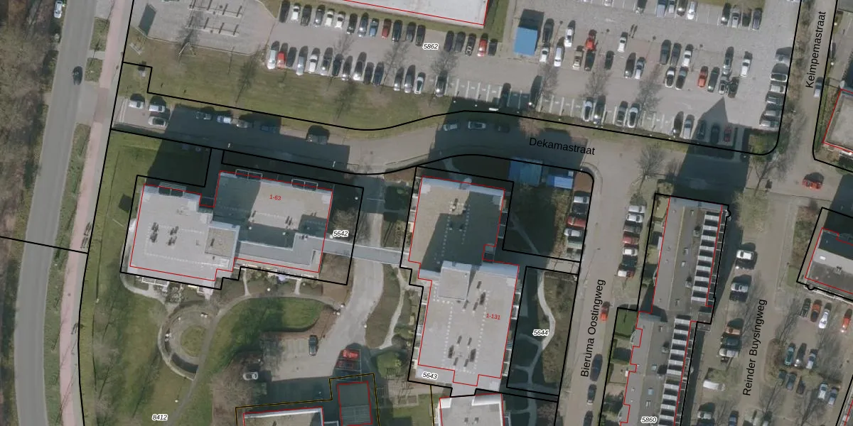 Bieruma Oostingweg 21 is gelegen op kadastraal perceel LWD00E5643. Deze kadastrale aanduiding is uniek en wordt gebruikt door het Kadaster om eigendomsrechten en andere zakelijke rechten vast te leggen. Het perceel maakt onderdeel uit van de kadastrale gemeente Leeuwarden.