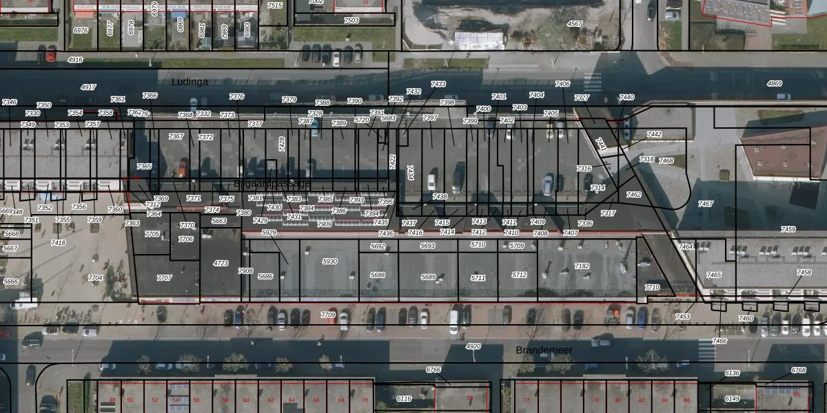 Gebruik de zoekbalk of klik op een perceel voor informatie over de adressen binnen dit perceel.