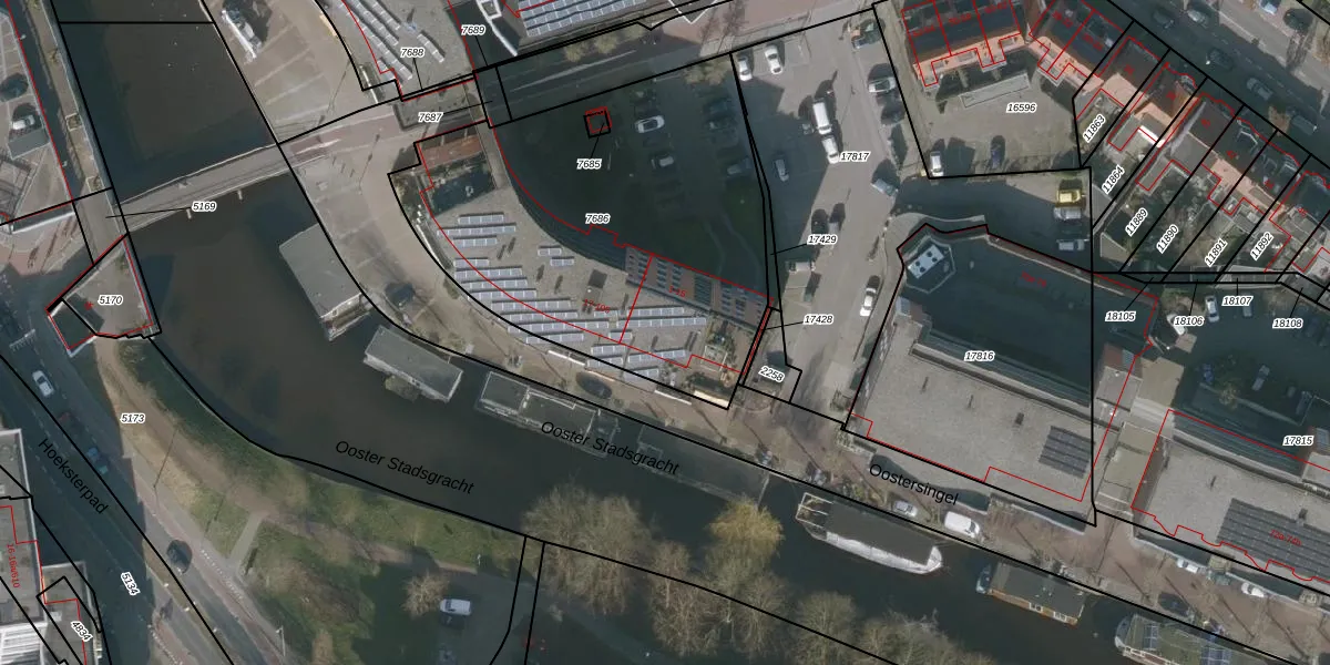 Het adres ligt op het perceel LWD00-F-7686, dat zich in de kadastrale gemeente Leeuwarden bevindt. Het perceel is met 1976 m² relatief groot. Het gemiddelde ligt in de kadastrale gemeente Leeuwarden op 1524,45 m². Het kleinste perceel in de kadastrale gemeente is 0 m² groot. De grootste perceeloppervlakte is 1,54 km². Er zijn 33 adressen aanwezig op het perceel. De huidige grenzen van het perceel zijn digitaal in de Basisregistratie Kadaster (BRK) geregistreerd op 26-07-2011.