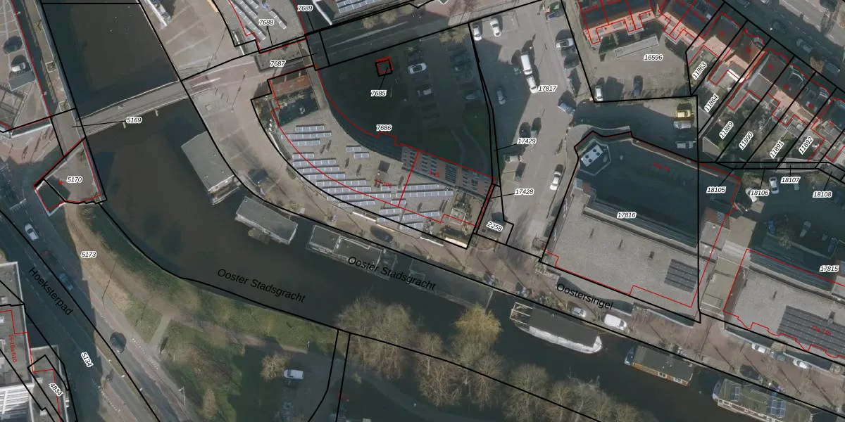 Het adres is gelegen op perceel 7686 in de sectie F en de kadastrale gemeente Leeuwarden. De kadastrale aanduiding is aldus LWD00-F-7686. Het perceel is met 1976 m² relatief groot. Het gemiddelde ligt in de kadastrale gemeente Leeuwarden op 1524,67 m². Het kleinste perceel in de kadastrale gemeente is 0 m² groot. De grootste perceeloppervlakte is 1,54 km². Op het perceel zijn 33 adressen aanwezig. In de Basisregistratie Kadaster (BRK) werden de grenzen van het perceel geregistreerd op 26-07-2011.