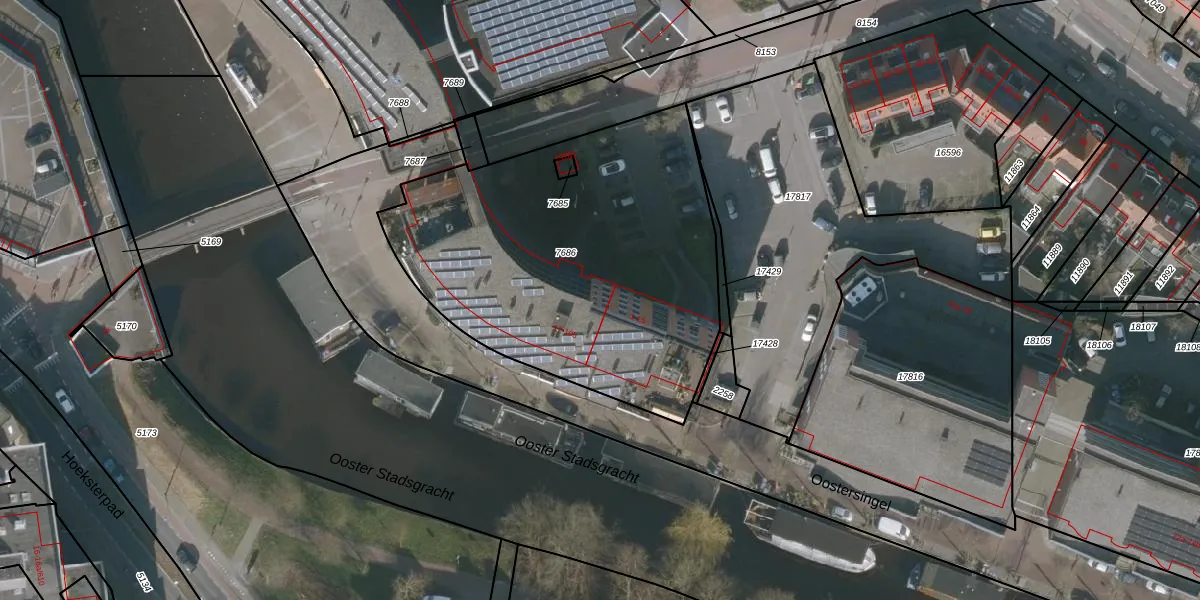 Het adres ligt op het perceel LWD00-F-7686, dat zich in de kadastrale gemeente Leeuwarden bevindt. Het perceel is met 1976 m² relatief groot. Het gemiddelde ligt in de kadastrale gemeente Leeuwarden op 1524,56 m². Het kleinste perceel in de kadastrale gemeente is 0 m² groot. De grootste perceeloppervlakte is 1,54 km². Er zijn 33 adressen aanwezig op het perceel. In de Basisregistratie Kadaster (BRK) werden de grenzen van het perceel geregistreerd op 26-07-2011.