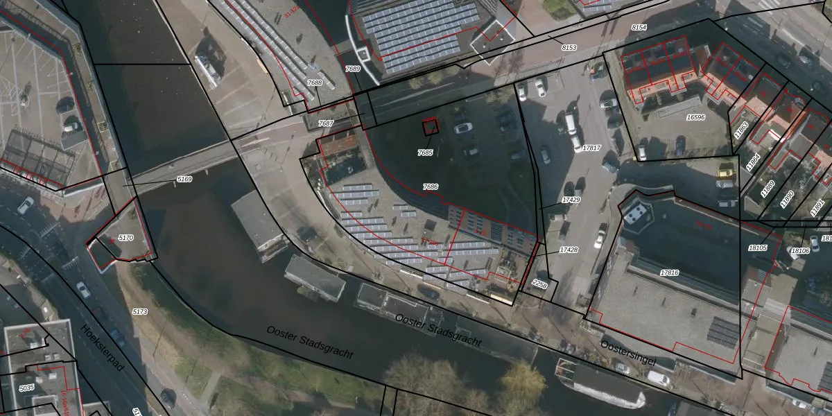 Het adres ligt op het perceel LWD00-F-7686, dat zich in de kadastrale gemeente Leeuwarden bevindt. Het perceel is met 1976 m² relatief groot. Het gemiddelde ligt in de kadastrale gemeente Leeuwarden op 1524,67 m². Het kleinste perceel in de kadastrale gemeente is 0 m² groot. De grootste perceeloppervlakte is 1,54 km². Er zijn 33 adressen aanwezig op het perceel. De laatste wijziging in het de Basisregistratie Kadaster (BRK) was op 26-07-2011.