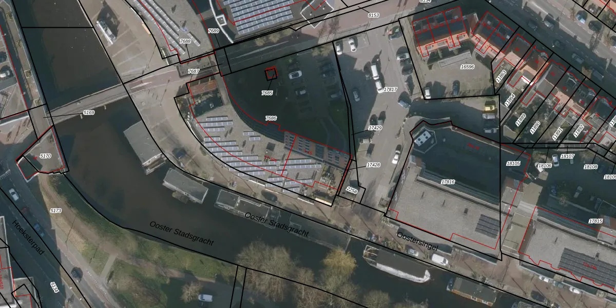Het adres ligt op het perceel LWD00-F-7686, dat zich in de kadastrale gemeente Leeuwarden bevindt. Het perceel is met 1976 m² relatief groot. Het gemiddelde ligt in de kadastrale gemeente Leeuwarden op 1524,67 m². Het kleinste perceel in de kadastrale gemeente is 0 m² groot. De grootste perceeloppervlakte is 1,54 km². Er zijn 33 adressen aanwezig op het perceel. In de Basisregistratie Kadaster (BRK) werden de grenzen van het perceel geregistreerd op 26-07-2011.