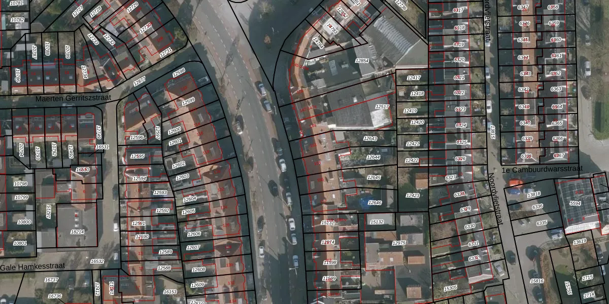 Gebruik de zoekbalk of klik op een perceel voor informatie over de adressen binnen dit perceel.