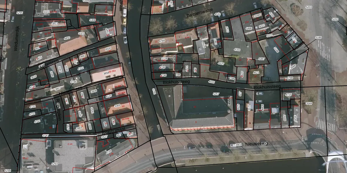 Het perceel waarop Blokhuissteeg 2-k staat heeft een oppervlakte van 1085 m². Dit is een zeer groot perceel. De perceeloppervlakte wordt geregistreerd door het Kadaster. Gedetailleerde informatie over de maten van dit perceel kunt u vinden in het rapport Kadastrale kaart met maatvoering van Blokhuissteeg 2-k.