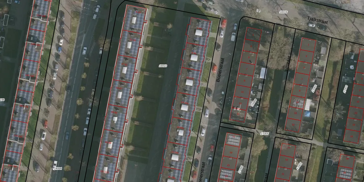 Het perceel waarop Boeierstraat 12-e staat heeft een oppervlakte van 7309 m². Dit is een zeer groot perceel. De perceeloppervlakte wordt geregistreerd door het Kadaster. Gedetailleerde informatie over de maten van dit perceel kunt u vinden in het rapport Kadastrale kaart met maatvoering van Boeierstraat 12-e.