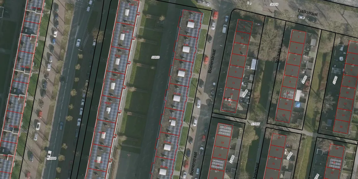 Het perceel waarop Boeierstraat 14-b staat heeft een oppervlakte van 7309 m². Dit is een zeer groot perceel. De perceeloppervlakte wordt geregistreerd door het Kadaster. Gedetailleerde informatie over de maten van dit perceel kunt u vinden in het rapport Kadastrale kaart met maatvoering van Boeierstraat 14-b.