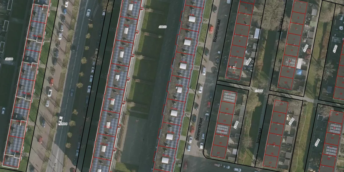 Het perceel waarop Boeierstraat 18-e staat heeft een oppervlakte van 7309 m². Dit is een zeer groot perceel. De perceeloppervlakte wordt geregistreerd door het Kadaster. Gedetailleerde informatie over de maten van dit perceel kunt u vinden in het rapport Kadastrale kaart met maatvoering van Boeierstraat 18-e.