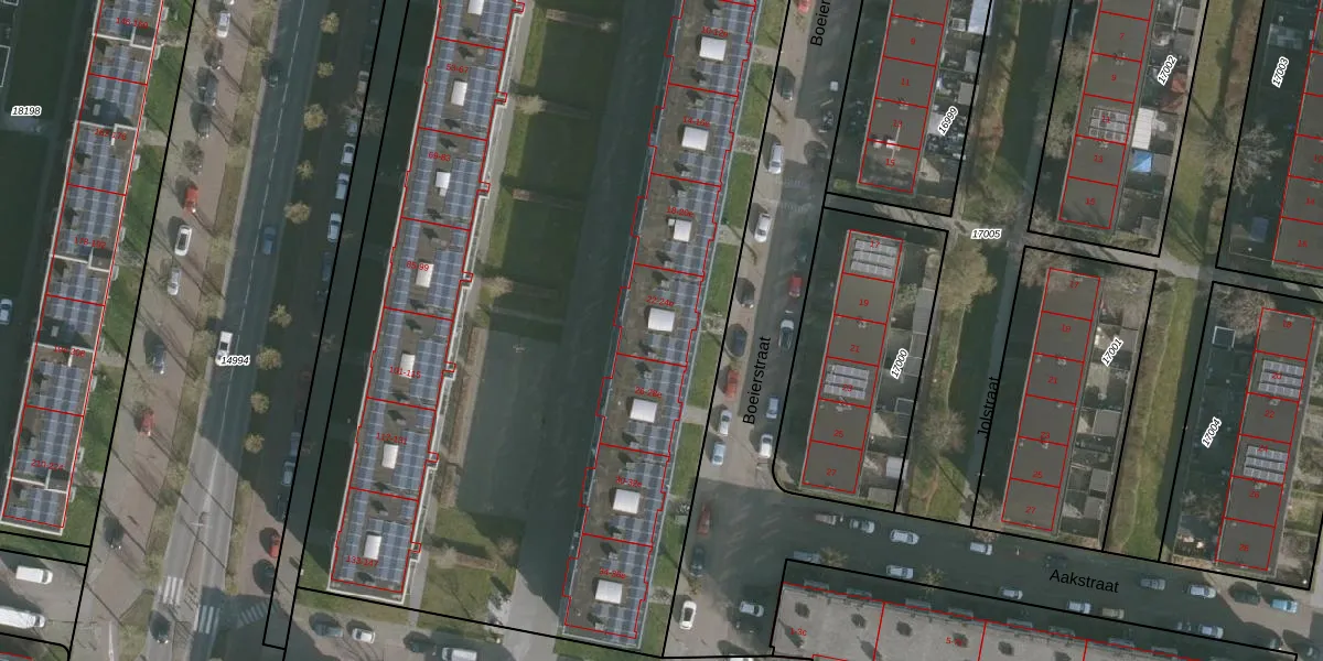Het perceel waarop Boeierstraat 24-c staat heeft een oppervlakte van 7309 m². Dit is een zeer groot perceel. De perceeloppervlakte wordt geregistreerd door het Kadaster. Gedetailleerde informatie over de maten van dit perceel kunt u vinden in het rapport Kadastrale kaart met maatvoering van Boeierstraat 24-c.