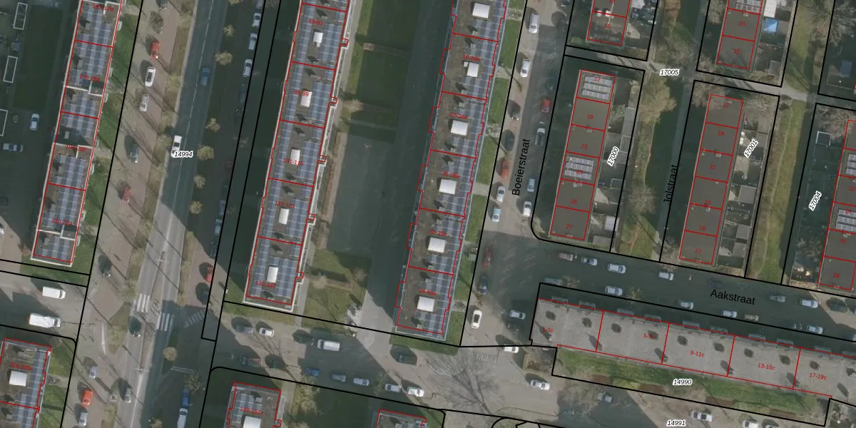 Het perceel waarop Boeierstraat 30-d staat heeft een oppervlakte van 7309 m². Dit is een zeer groot perceel. De perceeloppervlakte wordt geregistreerd door het Kadaster. Gedetailleerde informatie over de maten van dit perceel kunt u vinden in het rapport Kadastrale kaart met maatvoering van Boeierstraat 30-d.
