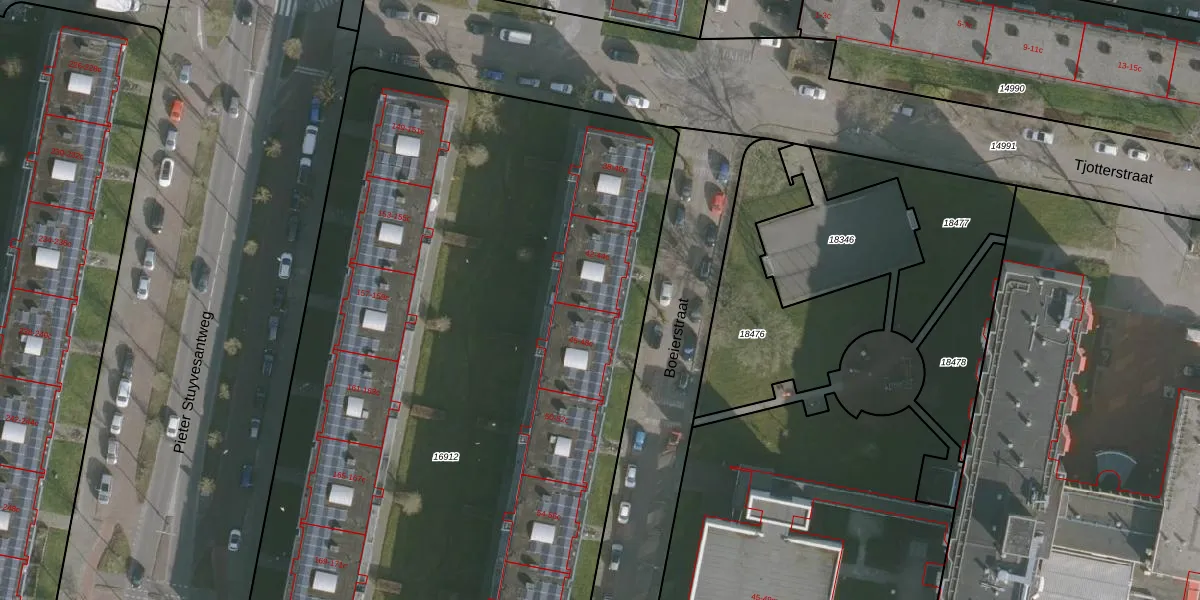 Het perceel waarop Boeierstraat 44-c staat heeft een oppervlakte van 6086 m². Dit is een zeer groot perceel. De perceeloppervlakte wordt geregistreerd door het Kadaster. Gedetailleerde informatie over de maten van dit perceel kunt u vinden in het rapport Kadastrale kaart met maatvoering van Boeierstraat 44-c.