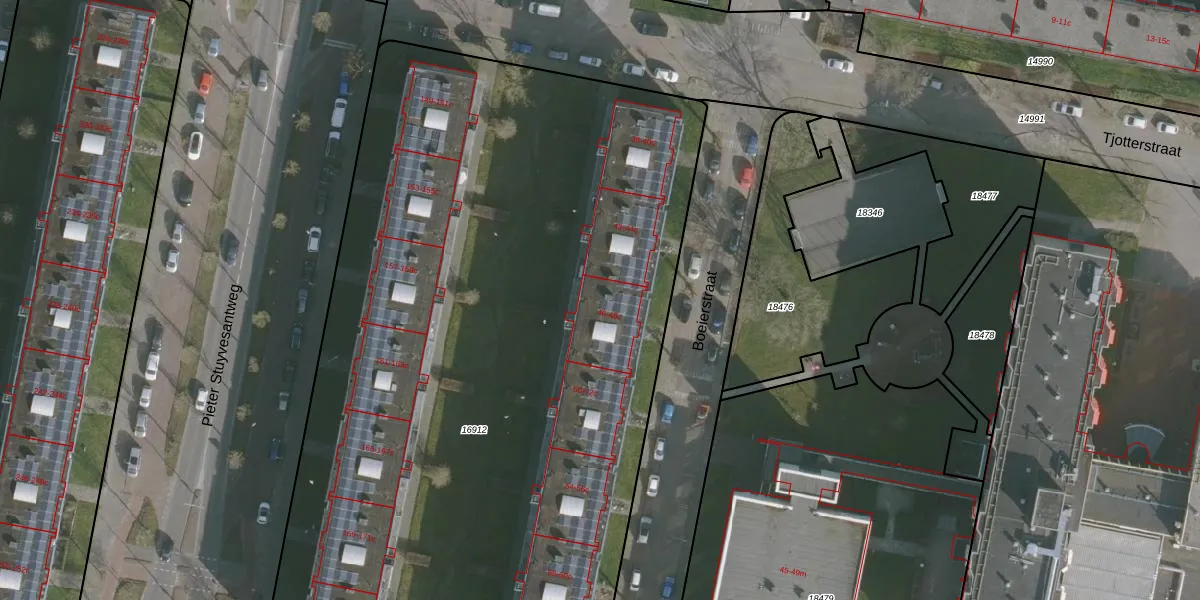 Het perceel waarop Boeierstraat 46-c staat heeft een oppervlakte van 6086 m². Dit is een zeer groot perceel. De perceeloppervlakte wordt geregistreerd door het Kadaster. Gedetailleerde informatie over de maten van dit perceel kunt u vinden in het rapport Kadastrale kaart met maatvoering van Boeierstraat 46-c.