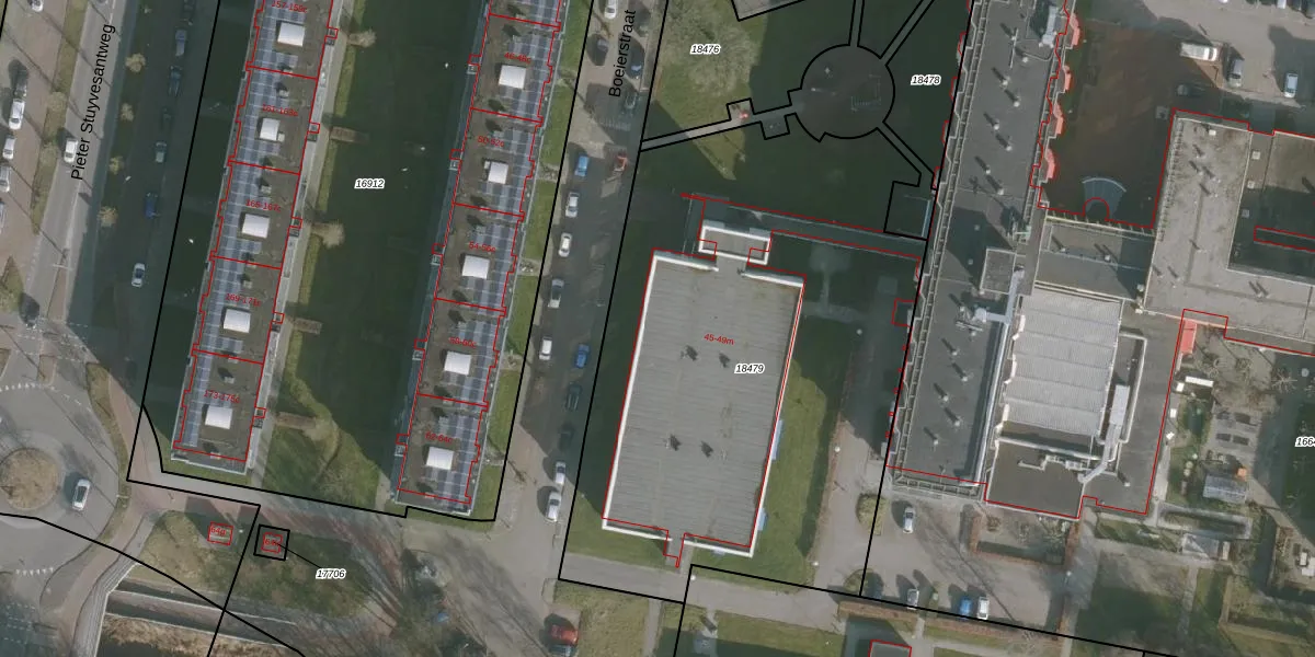 Het perceel waarop Boeierstraat 47-d staat heeft een oppervlakte van 3090 m². Dit is een zeer groot perceel. De perceeloppervlakte wordt geregistreerd door het Kadaster. Gedetailleerde informatie over de maten van dit perceel kunt u vinden in het rapport Kadastrale kaart met maatvoering van Boeierstraat 47-d.