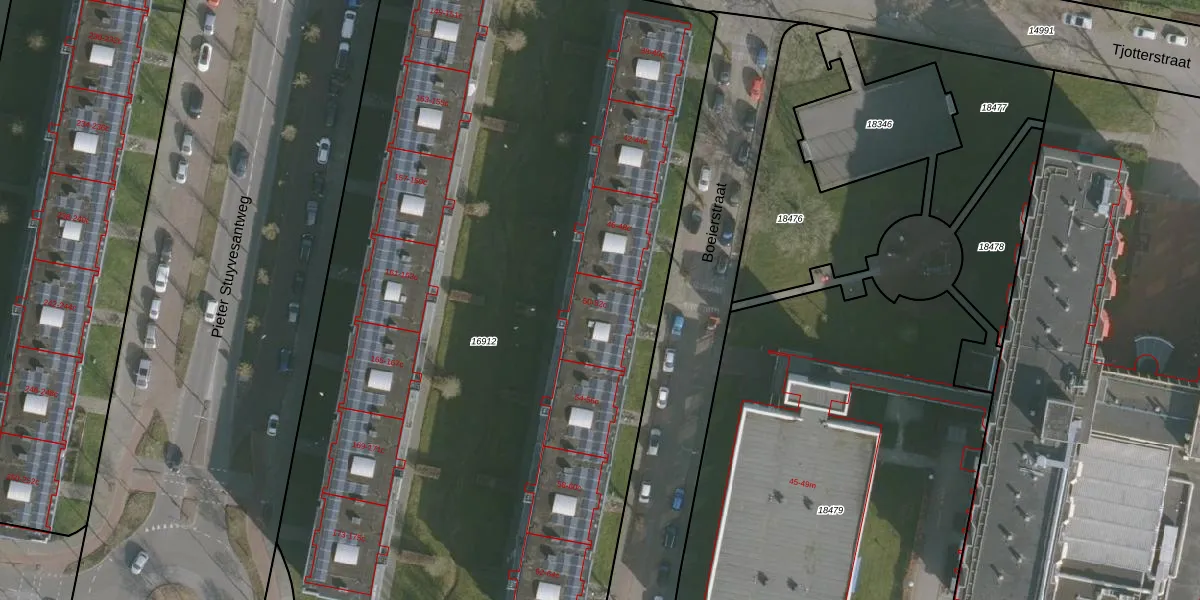 Het perceel waarop Boeierstraat 50 staat heeft een oppervlakte van 6086 m². Dit is een zeer groot perceel. De perceeloppervlakte wordt geregistreerd door het Kadaster. Gedetailleerde informatie over de maten van dit perceel kunt u vinden in het rapport Kadastrale kaart met maatvoering van Boeierstraat 50.